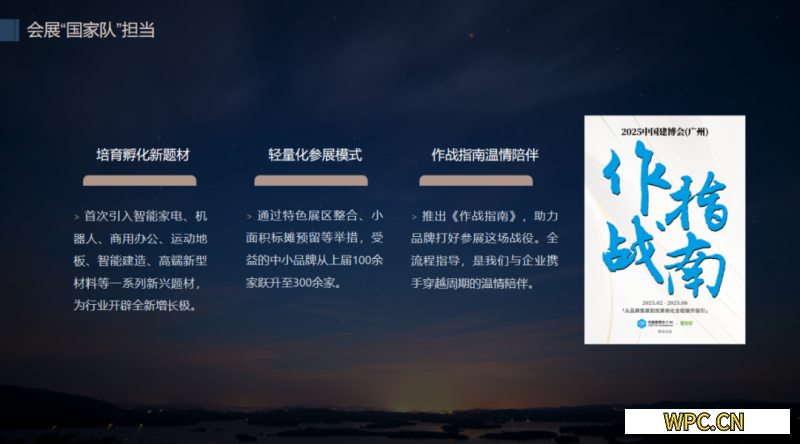其中,室內空間生態以“融生”為主題,以“定制+設計”為核心,聚焦內裝產品,涵蓋定制、智能、衛浴、照明、涂料等全鏈路題材,融合設計、科技與美學,積極重構居住與生活的多維場景。 室內空間生態內集結了內裝產品頂尖企業,華為、海信和國際品牌博世等首次參展;龍頭企業歐派、索菲亞、海爾三翼鳥、聯塑等悉數參展;領軍品牌志邦、金牌、TATA、樂邁、美心等深度參與。為了凸顯設計引領,鼓勵原創,廣州建博會在室內空間生態首創提出“設計定制”概念,將“高定與輕高定”進行融合布局,我們希望抓住一些持久有效的因素,旗幟鮮明地服務好這類設計品牌、設計師以及消費者。同時,全新打造CBD Lighting智能照明展區,構建“技術研發-場景應用-生態共建”全維創新平臺,首次設館已吸引立達信、西蒙、鴻雁、雷特、智有范等智能照明頭部企業參展;引進DALI、Matter等國際技術聯盟入駐。 門窗戶外生態亮點 門窗戶外生態以“外拓”為主題,以系統門窗、入戶門、門窗供應鏈等“大門窗”系統為核心,聚焦建筑外圍與戶外空間,充分發揮“中國門窗趨勢引領平臺”的行業影響力,為行業提供建筑外圍解決方案。 門窗戶外生態云集了全國代表性門窗品牌,全國龍頭系統門窗品牌皇派、派雅、新豪軒、軒尼斯、歐哲、富軒、羅蘭西尼等強勢參展;華東、西南龍頭易歐思、沃倫、飛宇、智宬軒、帕豪、綠盾、維為等齊聚一堂;差異化品類窗企高端UPVC窗企山東極景、河南科饒恩等高調亮相。 材藝智造生態亮點 材藝智造生態以“向新”為主題,聚焦工藝與技術,為供應鏈企業提供兼具專業性和商貿轉化屬性的場域。材藝智造生態匯聚五金頭部品牌企業,百隆、海蒂詩、海福樂、格拉斯等國際品牌重磅展出,東泰、悍高、頂固、歐派克、圖特等國內品牌共展風采。 值得一提的是,展會首次引入智能家電、機器人、商用辦公、運動地板、智能建造、新型材料等一系列新題材,為行業開辟全新增長極。此外,針對廣大中小品牌渴望參展但預算有限的情況,我們創新推出“輕量化”參展方案,通過特色展區整合、小面積標攤預留等舉措,受益的中小品牌從上屆100余家躍升至300余家。同時,展會還全新推出《作戰指南》,助力品牌打好參展這場戰役。全流程指導,是我們與企業攜手穿越周期的溫情陪伴。 目前,大家居建裝行業的價值鏈體系正在深刻重構,為了提升展商和觀眾的商業轉化成效,我們深入行業調研企業需求,進一步精準觀眾畫像。 企業最需要的觀眾是哪些?這些觀眾在哪里?我們該怎么做? 進而提出六大核心渠道。經銷商、外貿、裝企、設計師、商業公裝、新媒體六大渠道。 每個渠道有專班負責,專屬服務,有獨立方案,獨立預算保障落實,最終呈現出全年度100多項賦能舉措,形成“三鏈三聯”賦能服務體系。 “全球鏈接”領航出海 長期以來,我們的展商聚焦于國內市場,不少人誤以為廣州建博會只能做好國內觀眾。其實,外銷是我們的固有基因。我們是商務部下屬中國對外貿易中心集團的全資企業,與廣交會血脈相承,而廣州家博會是我們的兄弟展會。這種獨特的淵源賦予了廣州建博會在促進國際商貿領域天然的使命擔當,我們擁有實力強勁的專業團隊以及龐大且現成的買家資源。 面對國內市場壓力,企業出海需求井噴式增長。當大家還在“坐而論道出海路徑”時,我們已經用實際行動為企業帶來實實在在的海外買家。 本屆展會持續推進CBD World-Connect“全球鏈接”計劃和“領航出?!毙袆?,加快建立外銷渠道,寰球布局線上線下宣傳推廣,加強海外買家邀約服務,在全球范圍內幫助企業實現商業轉化。一是用好我們既有的海外買家資源和國際合作渠道,多輪次EDM營銷覆蓋超245萬全球買家;二是建立全球傳播體系,國際主要社交平臺和全球500多家專業媒體;三是加強全球精準招商,這個周期已舉辦5場國際路演推介活動;四是打造年度賦能和對接,全年舉辦10場海外供需對接會、主題論壇等活動。 “經贏鏈路”渠道下沉 多年來,招募經銷商是廣州建博會最核心的優勢。目前,經銷商投資開店日趨謹慎,部分品牌企業去年經銷商門店數量和相關渠道收入下降20%左右。 基于此,“經贏鏈路”賦能計劃將持續推動渠道下沉,深入全國三、四、五線城市進行精準觀眾邀約。展會期間,將舉辦系列大商、物業群體活動。我們還將聯合建眾智業和戴蓓TALK共同發布《經銷商發展白皮書》,希望用專業和創新為經銷商群體提質增效。 “指尖鏈動”流量破圈 當下,媒體渠道、新聞傳播方式和人群閱讀習慣都在深刻變化。我們也組建了年輕且專業的宣傳團隊,積極擁抱這一變化。 “指尖鏈動”賦能計劃圍繞新媒體重點平臺,以創意視頻、種草筆記等開拓全新流量入口;聯合多家權威MCN機構,邀請家居、建材領域KOL現場探展;推出資訊類短視頻欄目《建裝頭條》,首次啟用展會AI主播;線上發起#CBD家的crush瞬間#2025廣州建博會奇遇記等互動活動,線下打造沉浸式打卡動線,形成“線上傳播引流—線下場景體驗—二次傳播”閉環。 “星設聯”產設融合 當前設計行業面臨多重痛點與挑戰。一方面,設計資源分散,設計師在選材、落地執行等環節耗費大量精力;另一方面,設計創意同質化嚴重,部分設計師受限于傳統工具,難以快速響應客戶個性化需求。 “星設聯”圍繞這些痛點,以系列創新活動為設