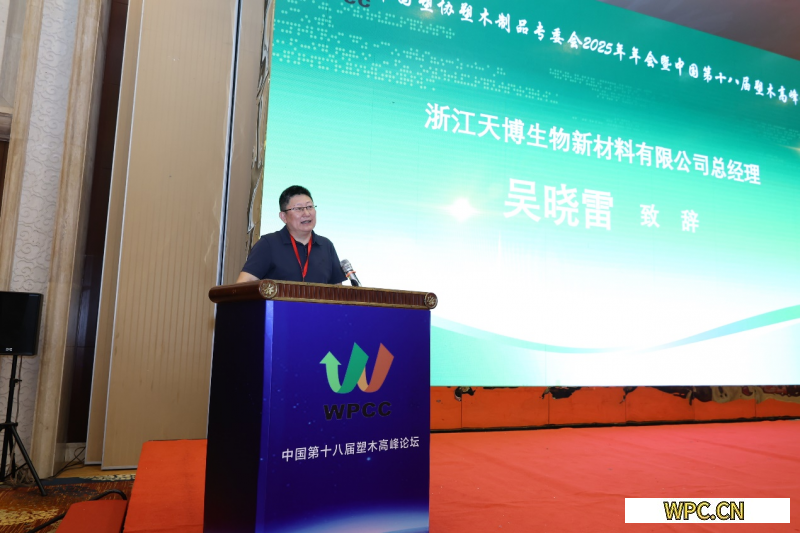 中國塑協塑木制品專委會秘書長王玉梅主持開幕式,并介紹到場嘉賓及贊助單位,湖州市莫干山高新區經發局局長楊升先生、浙江天博生物新材料有限公司總經理吳曉雷先生先后致歡迎詞。