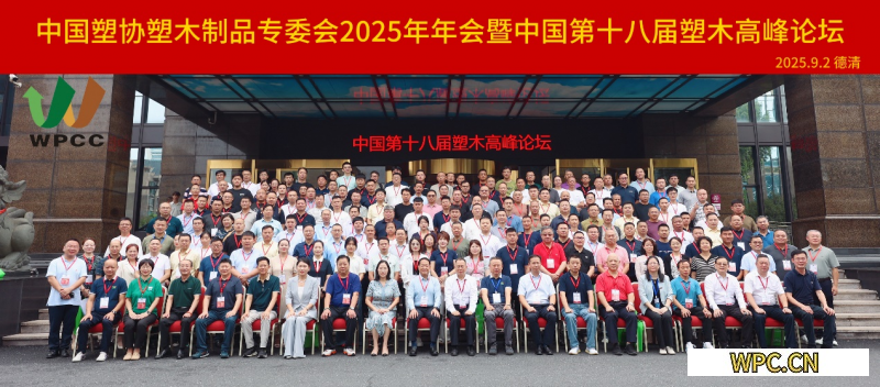 由中國塑料加工工業協會主辦,中國塑協塑木制品專業委員會和浙江天博生物新材料股份有限公司承辦的“中國塑協塑木制品專業委員2025年年會暨中國第十八屆塑木高峰論壇”于2025年9月1日-3日在浙江德清隆重召開。來自全國塑木制品、原輔材料、裝備模具、環保設備、相關協會、設計院、研究院、大學、檢測機構、相關媒體等單位的代表300余人參加了本次會議。