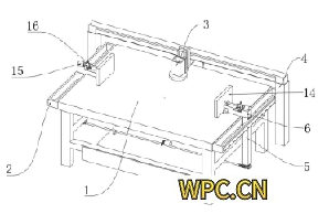 新型塑木地板加工用拋光裝置,包括:加工臺與拋光機(jī)構(gòu),加工臺的兩側(cè)均固定安裝有矩形框,位移組件,位移組件設(shè)置在矩形框上,且拋光機(jī)構(gòu)固定安裝在位移組件上,升降組件,升降組件設(shè)置在矩形框上,升降組件的頂部固定安裝有L形柱,L形柱上貫穿設(shè)置有安裝桿,且安裝桿與L形柱之間轉(zhuǎn)動連接,L形柱的一側(cè)通過固定架固定安裝有第一電機(jī),通過設(shè)置的升降組件、L形柱、安裝桿、第一電機(jī)、第一齒輪、固定座、齒條、第一軸承座、第一T形桿、夾持板、轉(zhuǎn)動組件與連接組件,使得塑木地板在翻面時,不需要通過人工手動操作,能夠自動進(jìn)行翻面,進(jìn)而既省時省力,又能夠提高加工效率。使用時,通過第一電機(jī)8帶動安裝桿7進(jìn)行轉(zhuǎn)動,然后轉(zhuǎn)動的安裝桿7同步帶動其上固定安裝的第一齒輪9進(jìn)行旋轉(zhuǎn),從而使旋轉(zhuǎn)的第一齒輪9通過與其齒合連接的齒條11能夠帶動固定座10進(jìn)行移動,進(jìn)而使固定座10上方第一軸承座12上安裝的第一T形桿13能夠帶動夾持板14對塑木地板的兩側(cè)進(jìn)行夾持固定,從而能夠保證塑木地板的穩(wěn)定性能,進(jìn)而使位移組件4便于帶動拋光機(jī)構(gòu)3對塑木地板進(jìn)行拋光,同時還便于后期帶動塑木地板進(jìn)行翻面,當(dāng)需要翻面時,通過升降組件5帶動L形柱6上升,從而使塑木地板能夠遠(yuǎn)離加工臺1,再然后啟動轉(zhuǎn)動組件15,從而使轉(zhuǎn)動組件15通過連接組件16能夠帶動第一軸承座12上轉(zhuǎn)動安裝的第一T形桿13進(jìn)行旋轉(zhuǎn),旋轉(zhuǎn)的同時,第一T形桿13能夠同步帶動夾持板14與其內(nèi)側(cè)夾持的塑木地板進(jìn)行轉(zhuǎn)動,從而能夠自動對塑木地板進(jìn)行翻面,進(jìn)而既省時省力,又能夠提高加工效率。