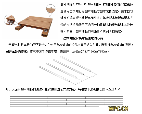 統的木制地板很容易受潮,而且受潮之后會出現有腐爛,膨脹變形的現象,這種地板就可以將這種問題很好的避免。它還具有防蟲,防白蟻的功效,少了蟲蟻的啃食,木板的壽命在一定程度上將會得到延長。考慮到不同用戶的需求,地板有不同的顏色可供人們選擇,會有天然的木制感,還有木質的紋理,假如還是沒有合適的顏色,還可以定制相應的顏色。其可塑性也很強,這樣就很方便對其進行個性化的打造。還有一點很重要,材料是屬于綠色環保的,還可以循環使用,在一定程度上還可以節省木材的使用。木塑戶外地板的防火性能也很高,其防火的等級在B1級,遇到了火會自動熄滅,還不會產生毒氣。地板要進行安裝的話,也非常的簡單,因為沒有那么繁瑣,安裝所需的時間還有費用也可以大大降低。地板的吸音效果,節能效果也非常的好。