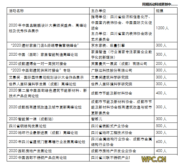 通過與相關(guān)行業(yè)協(xié)會/商會、市場方、工業(yè)園區(qū)、媒體深入合作,共同主辦和參與2020成都建博會的組團參展和參觀,在各合作單位召開的行業(yè)論壇、培訓(xùn)會、學(xué)術(shù)會、行業(yè)年會上做展會的全面推薦及發(fā)布;在各合作單位的資源平臺上為展會做深度宣傳及相關(guān)報道;同時在展會現(xiàn)場共同主辦2020行業(yè)高峰論壇。