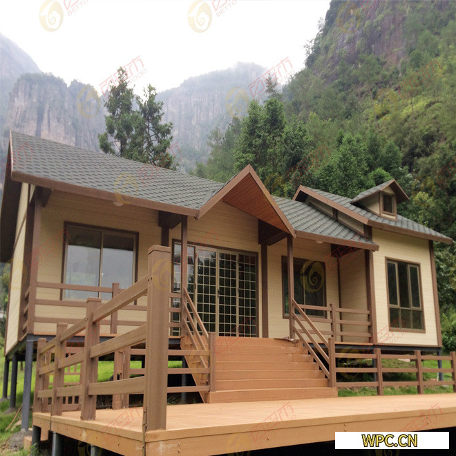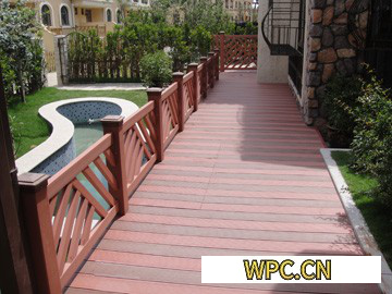 由于塑木復合材料具有一定的力學強度和防潮、防腐、防蛀的特性,所以適合運用于園林建筑的設計中。園林建筑中塑木復合材料主要運用于建筑的房屋蓋板,例如服務中心、茶室、亭、廊等。當塑木復合材料應用于房屋蓋板時,能與常規的屋面蓋板型材相媲美,除了易成型以外,還能仿制出瓦片式和板巖式的效果,并且防漏水、易安裝,適合應用于體量較小的園林建筑。由于現代科技的不斷發展,塑木復合材料的產品設計和加工工藝越發新潮,可利用模壓技術加工出多種多樣的型材,從而節約了更多的勞動時間。塑木復合材料運用于園林建筑中,不僅可以豐富建筑的造型,還可以使材料做出與木紋相似的裝飾圖案,既滿足了材料性能上的需求又滿足了人們感官上的需求。