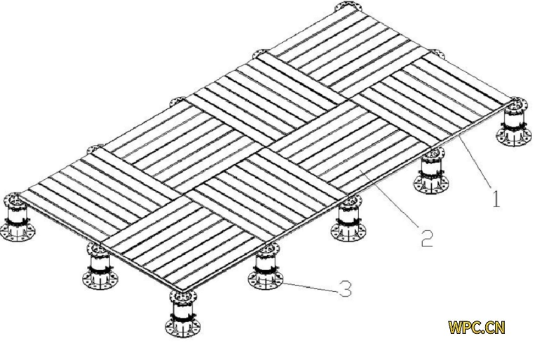 該結構簡單、拼接方便,升降座3可以調節高低適用于不同高低的地形不需要改變地形直接安裝,達到方便安裝的效果,采用塑木材料和鋁合金材料可以達到防水、防潮、防蟲等效果,根本上解決了木質戶外地板容易腐蝕、膨脹變形的問題,而且無污染、高環保性,提高耐腐蝕性、穩定性和強度,有效延長戶外地板的使用壽命。
