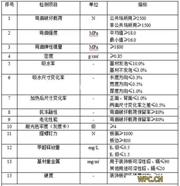 部分塑木地板類型材的規范性技術標準(供參考)