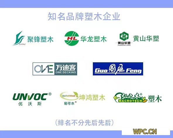 品牌塑木企業(排名不分先后順序):南京聚鋒新材料有限公司、安徽國風木塑科技有限公司、宜興市華龍塑木新材料有限公司、黃山華塑新材料科技有限公司、吉林華邦新材料科技有限公司、浙江坤鴻新材料有限公司、紹興永昇新材料有限公司、河北泓之木環??萍脊煞萦邢薰?。