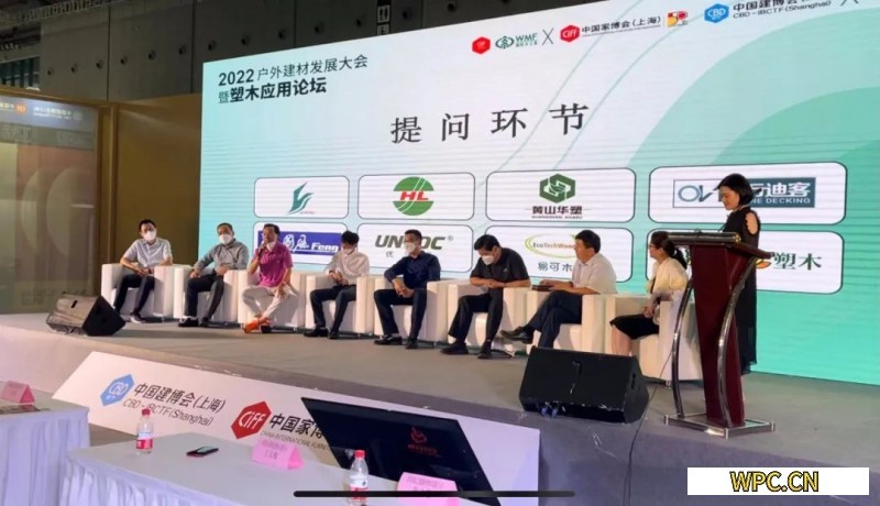 會議上,中國塑料加工工業協會塑木制品專委會秘書長、全國輕質與裝飾裝修建筑材料標準化技術委員會木塑復合材料分會、東莞市漢維科技股份有限公司應用研發總監王玉梅會議上主題演講分享了“塑木復合材料的性能與戶外建材中的應用”,和中國塑料加工工業協會塑木制品專委會專家組、青島綠之都新材料有限公司總經理張之敬主題演講分享了“PE 發泡產品的應用”。八家企業代表分別介紹了各自企業的生產及品牌優勢,會議現場媒體單位與觀眾對塑木產品的性能與應用等提出了眾多問題,品牌塑木各企業代表臧董(宜興市華龍塑木新材料有限公司董事長),王總(紹興永昇新材料有限公司總經理)、彭總(浙江坤鴻新材料有限公司總經理)、張之敬張總等分別闡述與回答了現場媒體與觀眾的疑問,與材料使用指南和解決方案等,讓廣大觀眾更多的了解塑木材料的應用、塑木材料的甄選、以及塑木行業的品牌企業等,大大推動塑木材料在戶外建材市場的認知度。