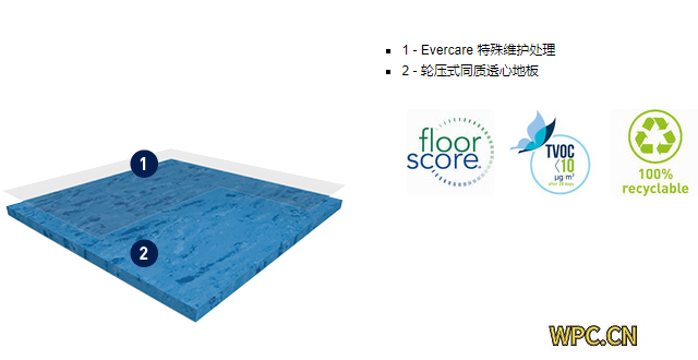 Evercare特殊維護(hù)處理,終身無需打蠟, 強(qiáng)抗污性能