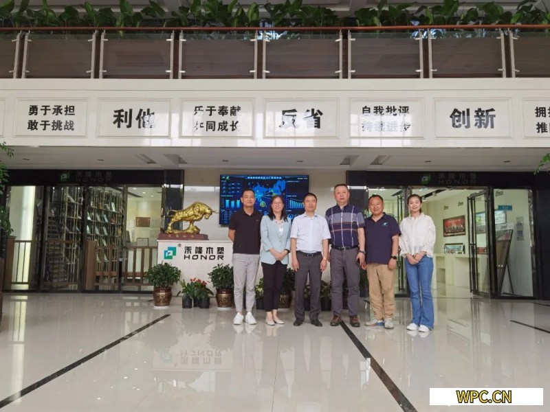 2022年6月6日中國塑協塑木制品專委會吳勁松理事長攜秘書處和專委會專家組專家余繼春,副理事長單位吉林華邦新材料科技有限公司董事長李方圓一行拜訪了副理事長單位安徽國風木塑科技有限公司董事長賈紅瀅、總工程師方曉鐘、副總經理肖磊與技術質量部部長馮娟。